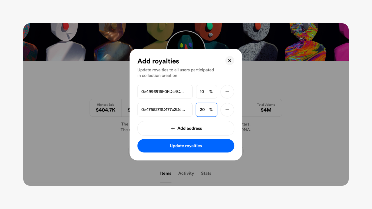 You can even create split royalties. That means you can give a community vault, team members or collaborators their fair share.
