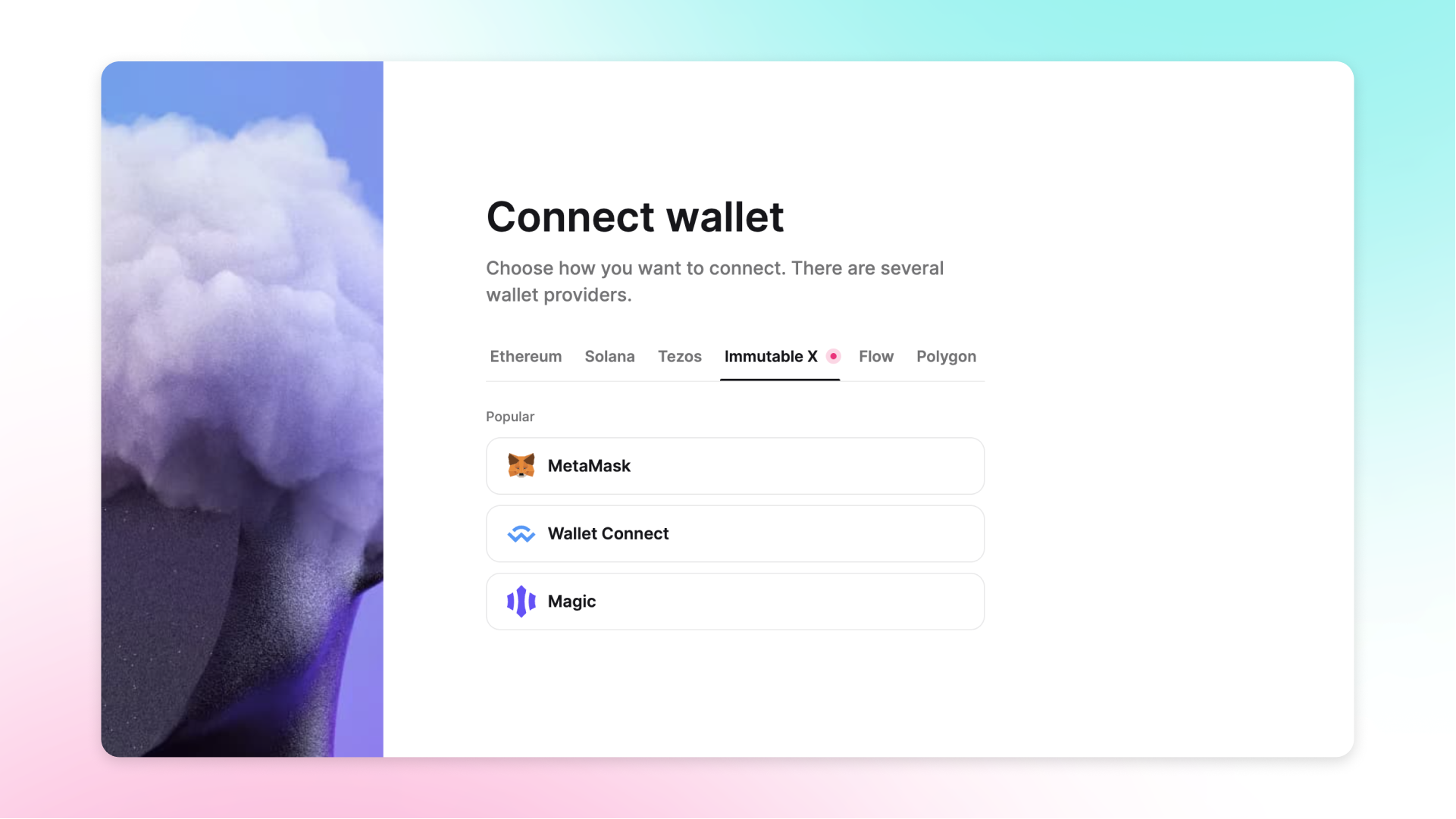 If you’re completely new to Web3 and find the process of setting up an Ethereum wallet challenging, don’t worry — you can create a non-custodial wallet with only your email! Select Magic for this flow, and in a few simple steps you’ll have a wallet that allows you to trade IMX NFTs.